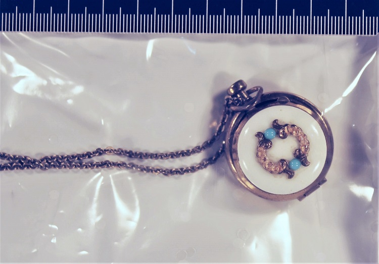 Beigefügt sind ein Foto von Elke Kerll aus dem Jahr 1969 sowie ein Bild der aufgefundenen Kette.
